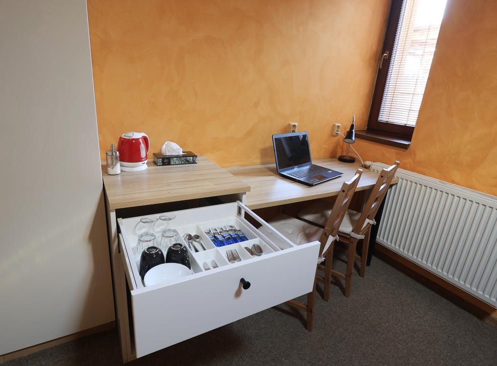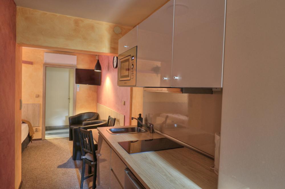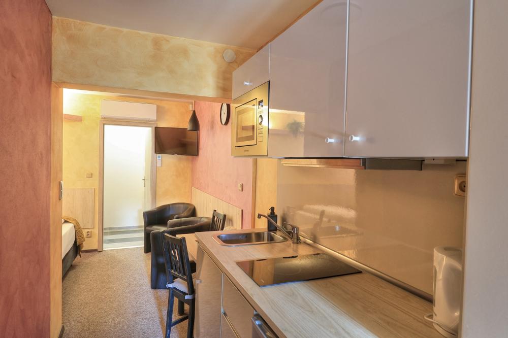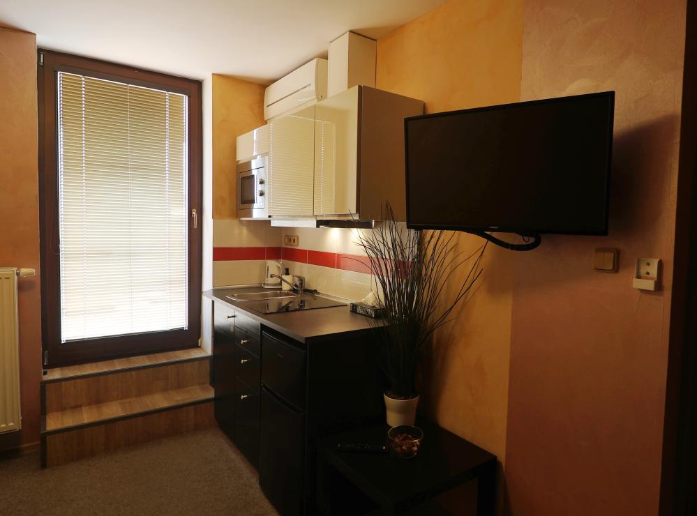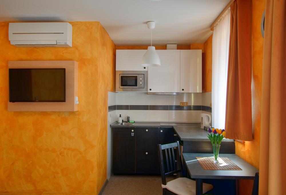 … mehr anzeigenDie Pension U Admirála in Kladno bietet eine Unterkunft in einem Doppelzimmer-Apartment mit Kochnische Nummer 6. Dieses Apartment ist ideal für zwei Gäste und bietet keine Möglichkeit für ein Zustellbett. Das 26 Quadratmeter große Apartment verfügt über ein Schlafzimmer und einen Raum, was ausreichend Platz für einen komfortablen Aufenthalt bietet. Zur Ausstattung gehören ein Doppelbett oder getrennte Betten, die eine