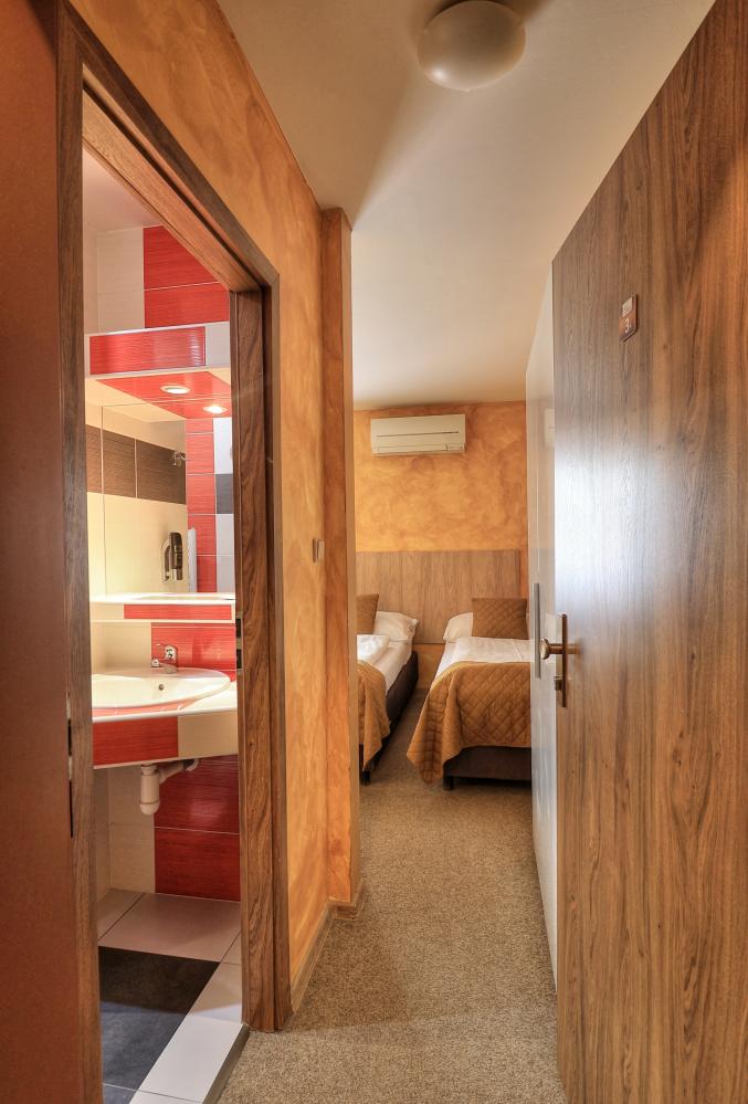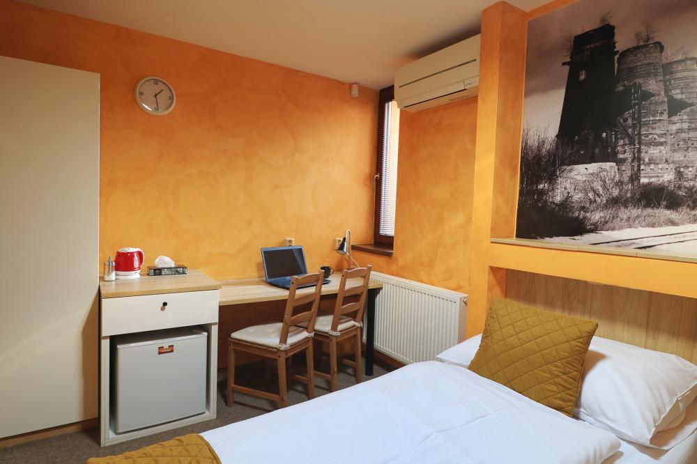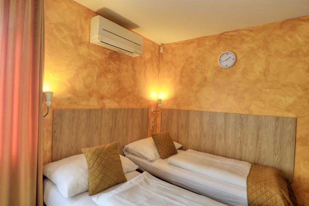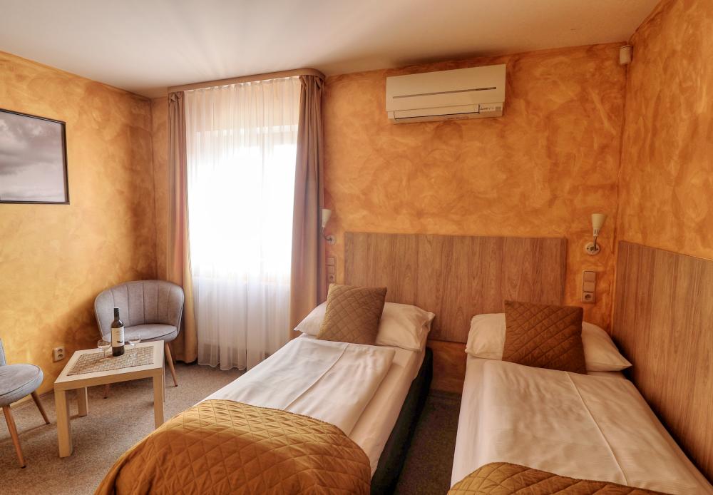 … mehr anzeigenDie Pension U Admirála in Kladno bietet ein gemütliches Doppelzimmer mit getrennten Betten, gekennzeichnet mit der Nummer 4. Dieses Zimmer ist eine ideale Wahl für zwei Gäste oder auch für Einzelpersonen, die getrennte Betten bevorzugen. Das 17 Quadratmeter große Zimmer ist mit zwei Einzelbetten ausgestattet, die ausreichend Platz für eine komfortable Erholung bieten. Zur Ausstattung des Zimmers gehört ein Fernseher,